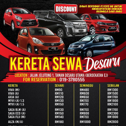 Tempah dalam talian hari ini dengan perkhidmatan kereta sewa dalam talian yang terbesar di dunia. Kereta dengan keadaan tiptop dan selesa. Bagi area bandar kuala terengganu kami ambil hanya rm10 sehala untuk caj delivery.