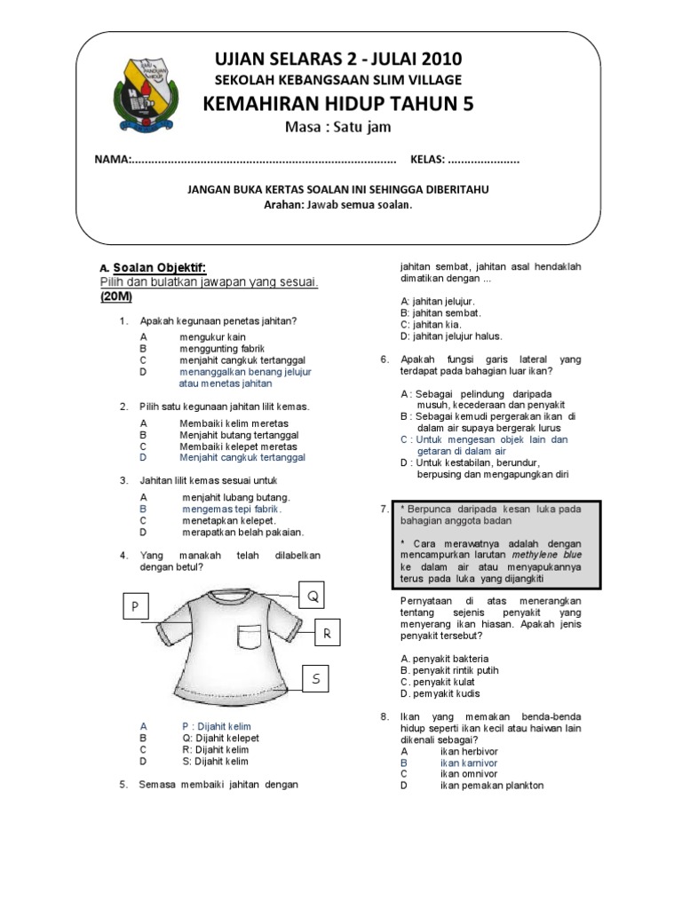 Soalan Ujian Kemahiran Hidup Tahun 5 Pdf