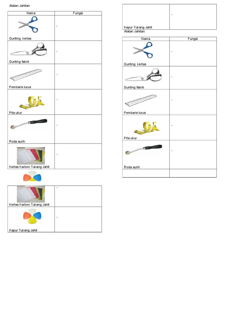 Rbt Tahun 5 Alatan Jahitan Worksheet